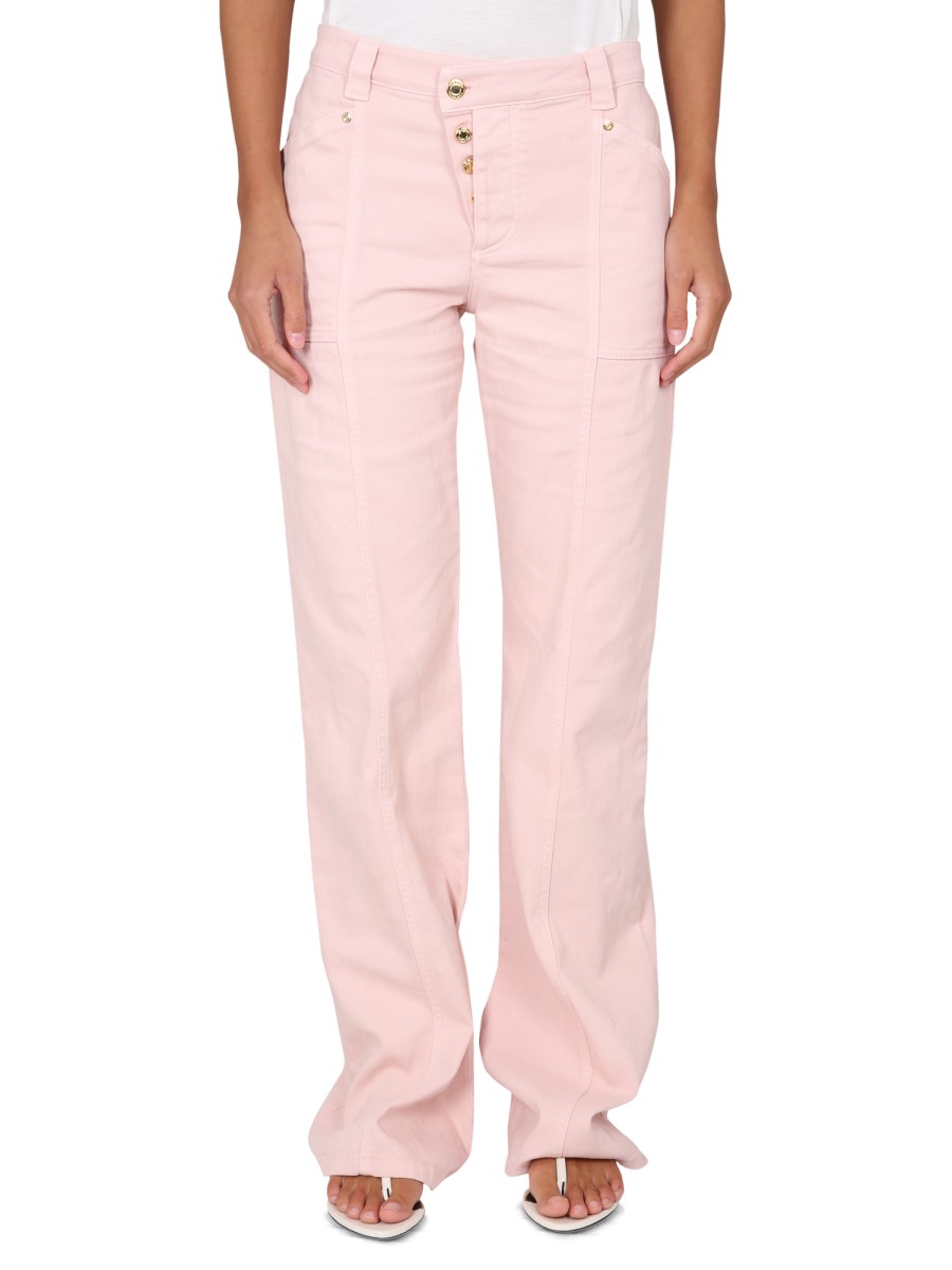 composizione- CHIUSURA CON BOTTONI- PASSANTI IN VITA PER CINTURA- DUE TASCHE LATERALI - DUE TASCHE SUL RETRO- WIDE LEG- 97% COTONE, 3% ELASTAN- MADE IN ITALY- LA MODELLA È ALTA 180 CM E INDOSSA LA TAGLIA 27