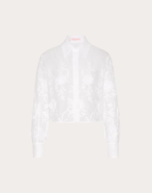 Camicia in Camellia Organdis - Chiusura frontale con bottoncini nascosti - Camellia Organdis (90%Cotone, 10%Poliestere) - Sfoderata - Lunghezza 48 cm da punto spalla per la taglia 40 IT - Lunghezza manica 83 cm da centro dietro per la taglia 40 IT - La modella è alta 176 cm e indossa una taglia 40 IT - Made in ItalyIl look è completato con scarpe Valentino Garavani VLogo Locker.